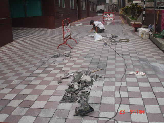 房屋整修 | 房屋大小修繕:車道地磚補修工程 , 車道入口處,因有大型車在壓,容易造成受損,此車道下方為地下室,造成地磚損壞的原因為:地下室上層、樓板施作PU防水層,導(dǎo)致內(nèi)軟外硬的情況,經(jīng)長期的輪壓造成振動而損壞.