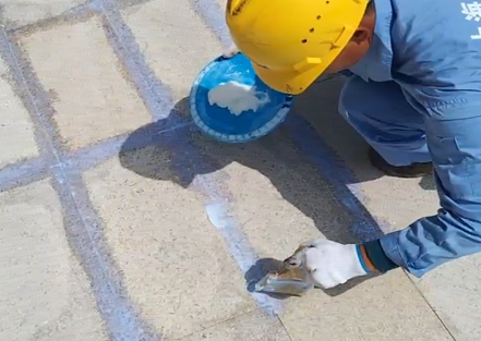 第二步:在瓷磚縫處涂刷濃縮厚質(zhì)型涂料。剛開始涂刷時(shí)涂料是乳白色,干后透明色,涂刷第2或3遍時(shí),一定要待前道涂膜干透現(xiàn)透明色時(shí)才能施工,也可大面積刮涂或刷涂施工。